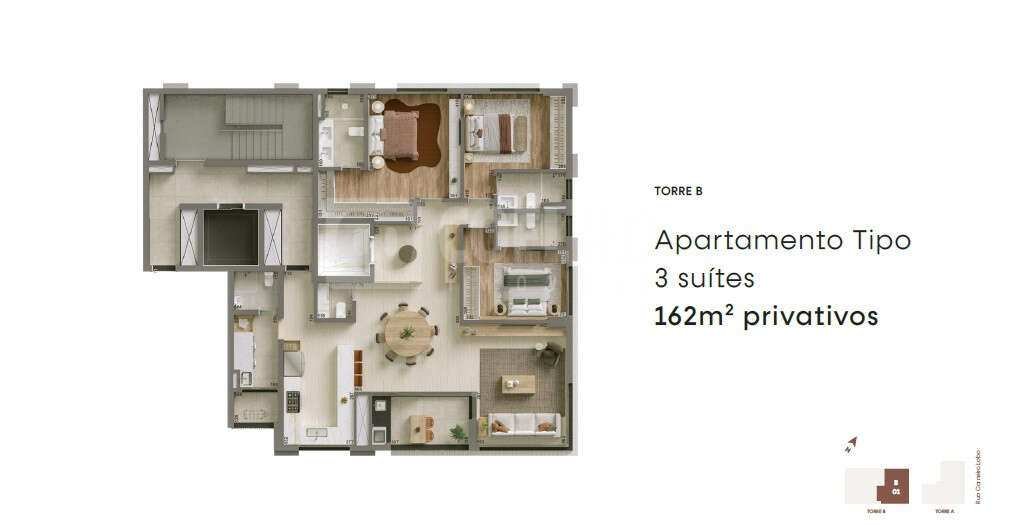 Apartamento Luxo 162,14m² à venda 3 suítes 2 vagas Edifício Piemonte Poty Curitiba
