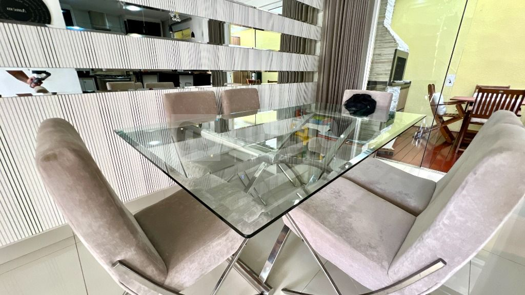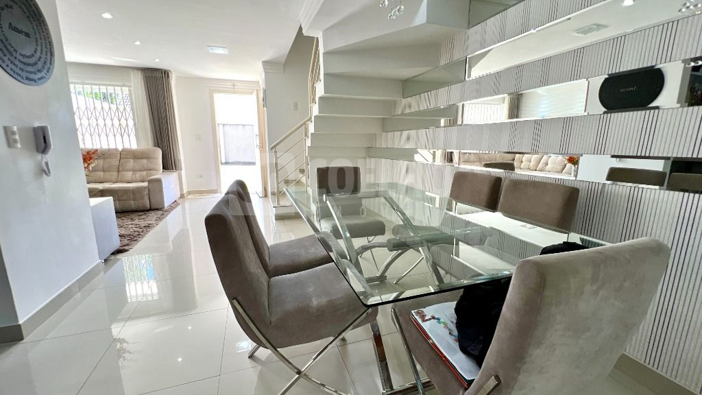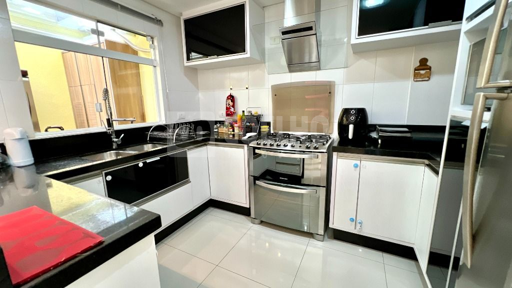 Impecável sobrado contendo: Sala de estar ampla e aconchegante com painel de tv, Sala de jantar Cozinha com móveis planejados, coifa e torneira gourmet monocomando.