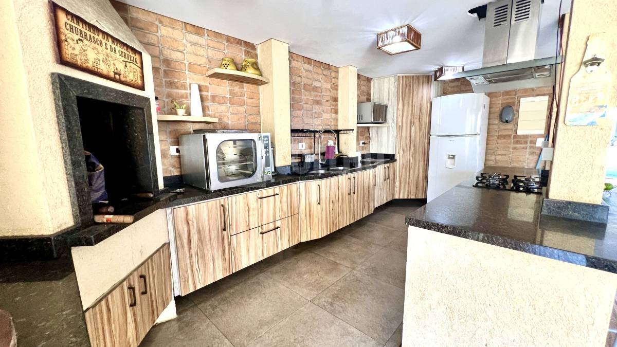 - Cozinha ampla com móveis planejados e ilha de apoio. Ambiente totalmente integrado com a área social da casa